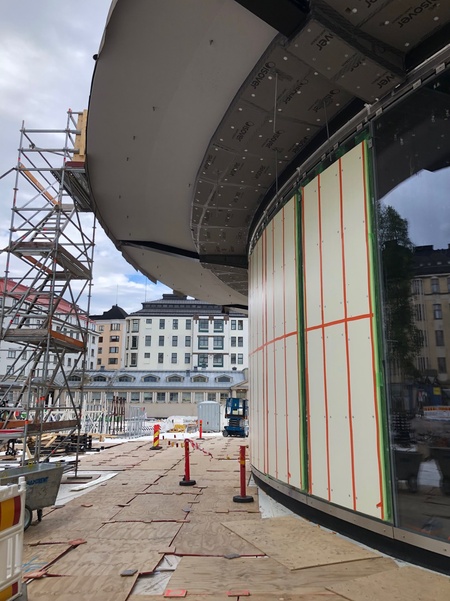 ![]() Päärakennuksen ja uudisrakennuksen työmaa katutasolta nähtynä. Kuvaaja: Matti Heimonen |