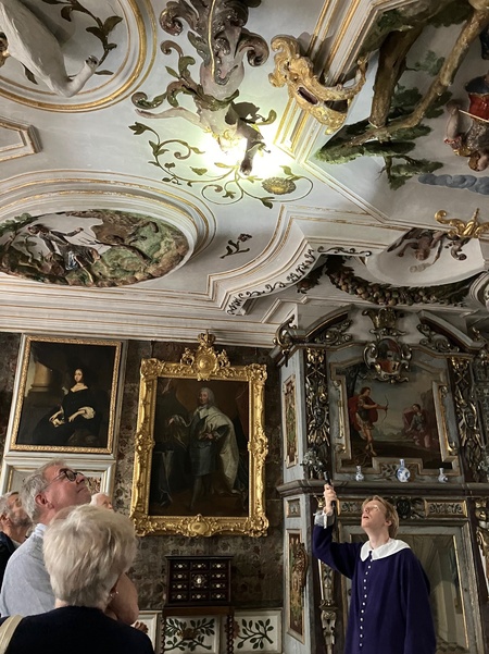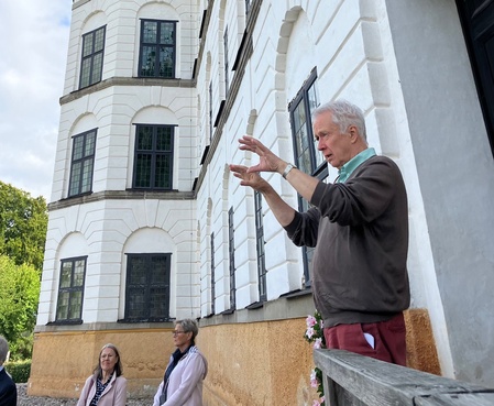 ![]() Matkanjohtaja, KMY:n hallitusjäsen Bernt Morelius kertomassa Skoklosterin linnasta. Kuvaaja: Matti Heimonen |