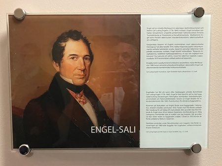 Katajanokan kasarmi oli Ludvig Engelin ensimmäinen suuri rakennushanke Helsingissä. Työ alkoi vuonna 1816 ja loppuvuodesta 1819 ensimmäiset sotilaat asettuivat kasarmiin. Oppaamme perehdytti meidät Katajanokan historiaan vuodesta 1700 alkaen sekä itse Merikasarmin rakennuskompleksin vaiheisiin rakennusvaiheesta alkaen. Sota- ja meriväkien käytössä kasarmi oli vuoteen 1970 asti. Ulkoministeriö muutti perusteellisten korjaus- ja uudisrakennustöiden jälkeen rakennuksiin vuonna 1989. Kyseisen kunnostustyön yhteydessä päärakennuksen kivijalkaan, joka siihen asti oli ollut varastotilana, rakennettiin Engel-sali Ulkoministeriön edustustilaksi. Tässä kauniissa punatiiliholvatussa salissa saimme nauttia historiasta kaikilla aisteilla.