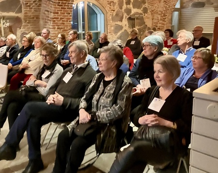 Enne paluumatkaamme tutustuimme vielä Tammelan keskiaikaiseen harmaakivikirkkoon. Kirkkoherra kertoi meille kirkkorakennuksen 500-vuotisesta historiasta ja esitteli taideaarteita. Kuulimme myös parhaillaan käynnissä olevasta kunnostustyöstä.