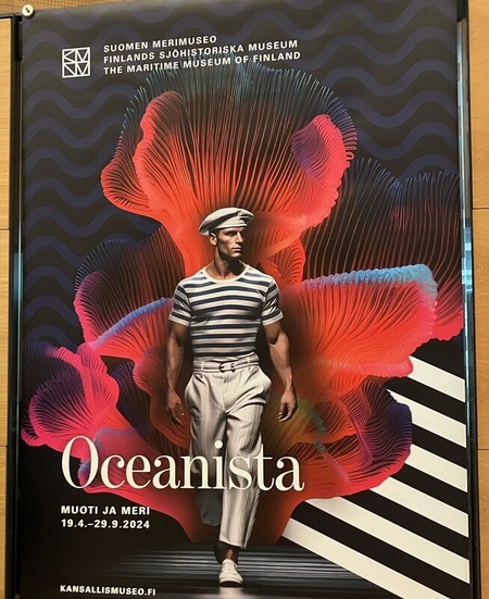 Näyttely kertoo merellisten aiheiden matkasta arkivaatteisiimme ja kansainvälisille muotiareenoille. Tanskan merimuseossa alun perin tuotettu ja siellä kävijäennätyksiä rikkonut näyttely on nyt esillä Suomen merimuseossa Kotkassa 19.4.-29.9.2024.