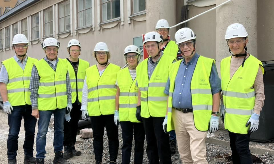 Työmaita on oikeastaan kaksi, uudishankkeesta vastaa SRV ja restauroijana toimii NCC. Vierailun isännäksi saimme kokonaisuutta valvovan Museoviraston edustajan käyttöpäällikkö Tomi Nikanderin. ”Hanke on aikataulussaan eli valmista on vuonna 2027” kiteytti Tomi ja kutsui meidän uudelleen ensi vuonna todistamaan työn etenemistä.